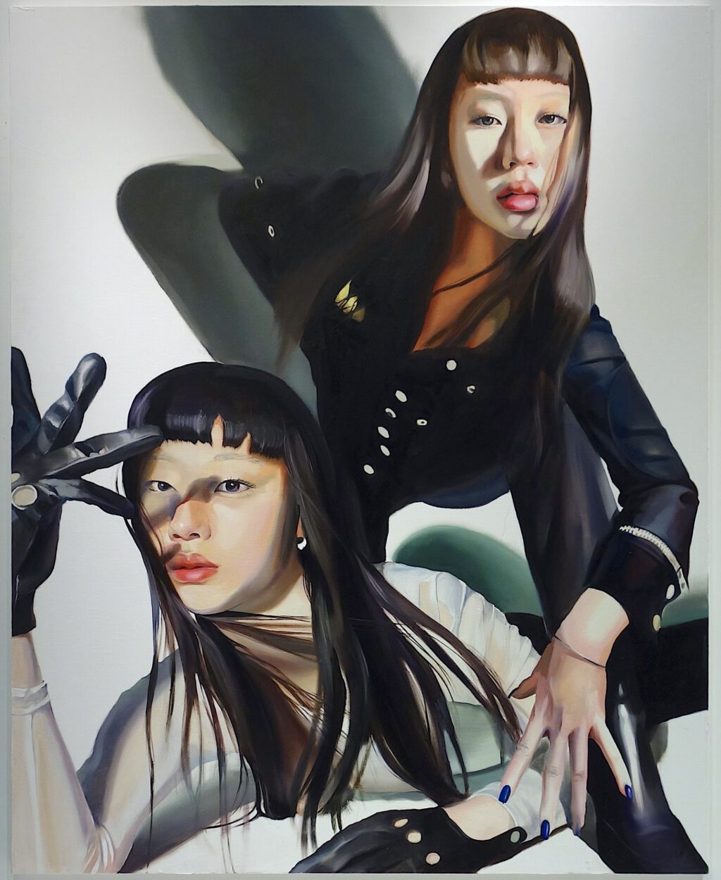 Transcending a kind of postapocalyptic Japanese social and gender liberation, her sensitive self-portraits inspire imaginative realms of passionate, arousal vibrations and the manifestation of a slutty self-control. Her oil paintings dramatise themes of intimacy and atonality that blend the goth-contemporary with hints of Japanese pop-culture.